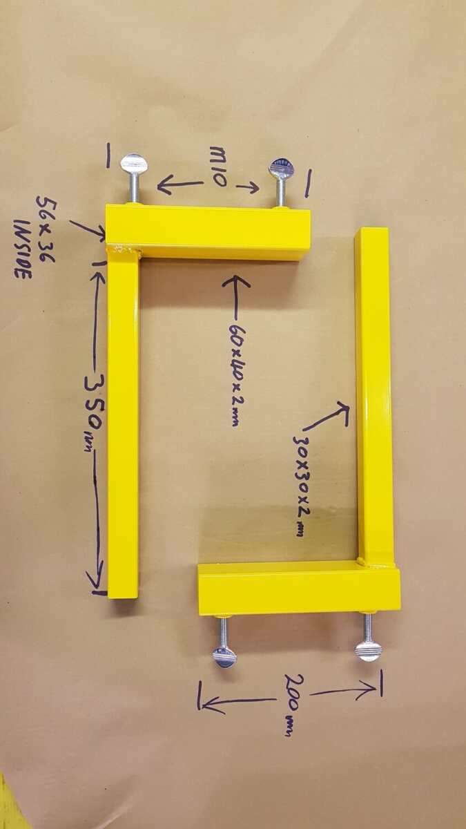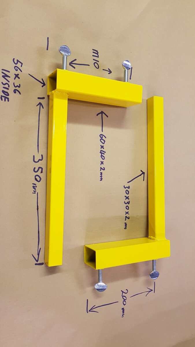 Gable Dolly's sold in pairs . Manufactured from 60mm x 40mm x 2mm box and 30mm x 30mm x 2mm box. 2 x M10 zinc plated thumb screws.